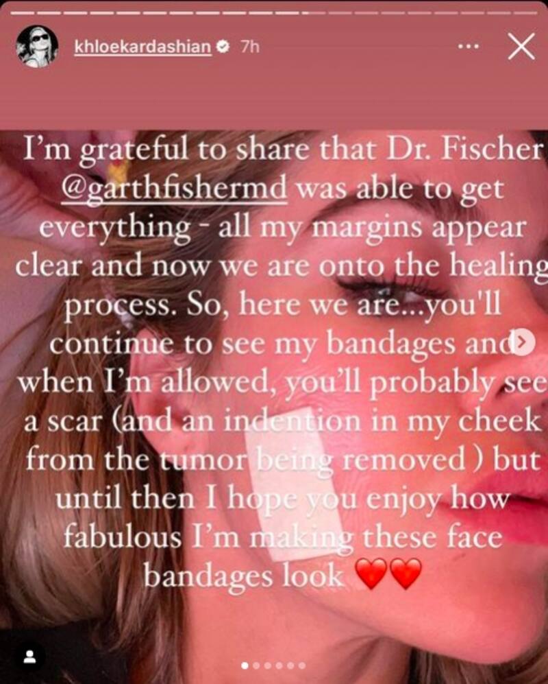 Después de biopsias y otros análisis se dieron cuenta que era un bulto muy extraño para su edad (38) así que los médicos le pidieron hacerle una cirugía de manera inmediata para retirarlo. Su cirujano lo nombró como un "tumor peligroso y significativo". Justamente el médico también compartió la historia en redes sociales lamentando que Khloé Kardashian tuviera que pasar por un procedimiento así, sobre todo porque trabaja mucho con su imagen.