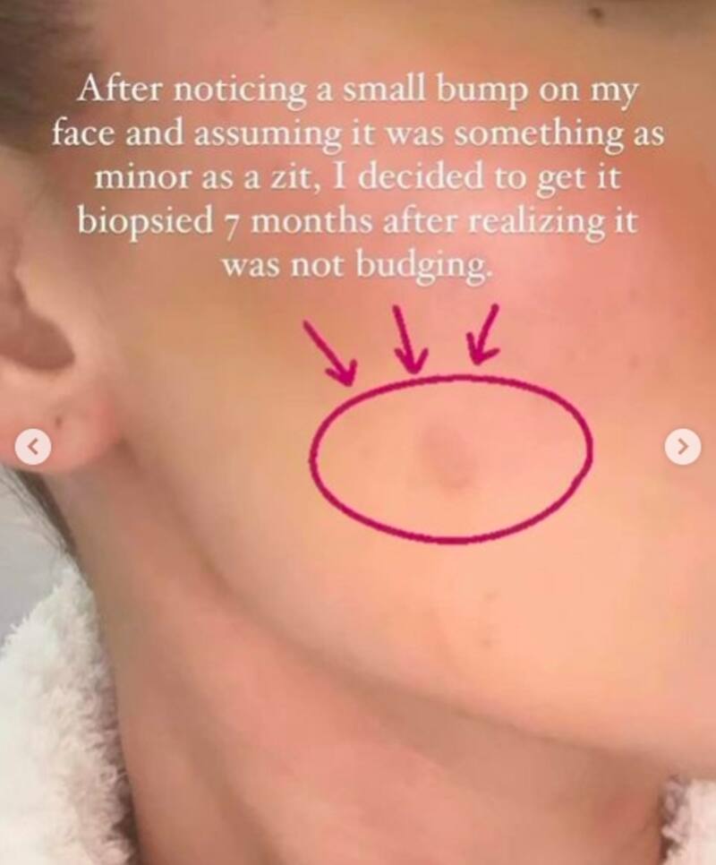 Reveló sus más grandes miedos después que le detectaron el tumor. Compartió imágenes de su rostro con vendajes aclarando los rumores que circulaban en redes sociales con la razón. "Después de notar un pequeño bulto en mi cara y asumir que era algo tan pequeño como un grano, decidí hacerme una biopsia siete meses después de darme cuenta de que no se movía", inició su testimonio.
