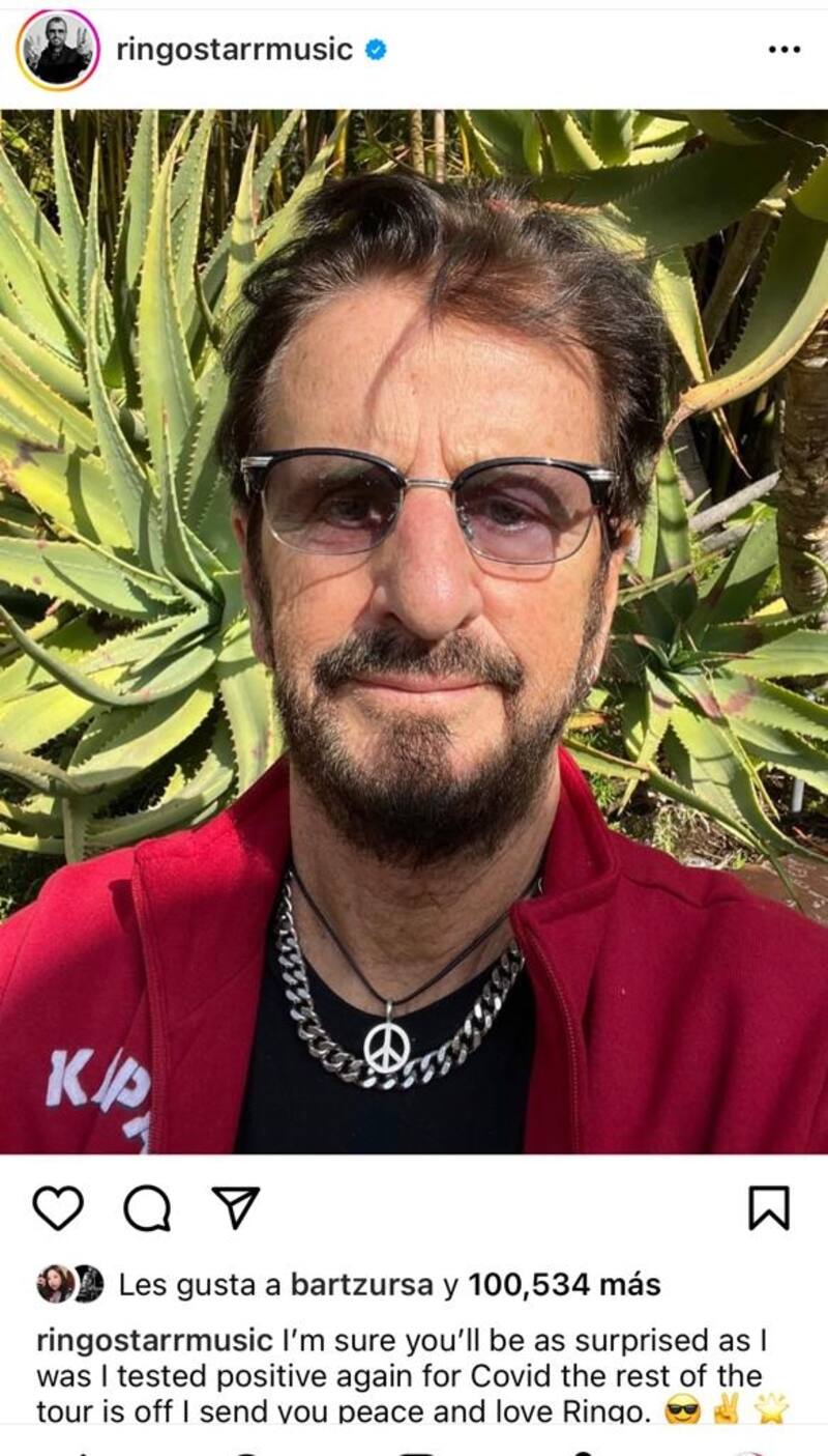 "Estoy seguro de que estarán tan sorprendido como yo. Di positivo nuevamente por Covid. El resto de la gira está cancelada. Les envío paz y amor, Ringo", escribió el cantante y baterista en su cuenta de Instagram.