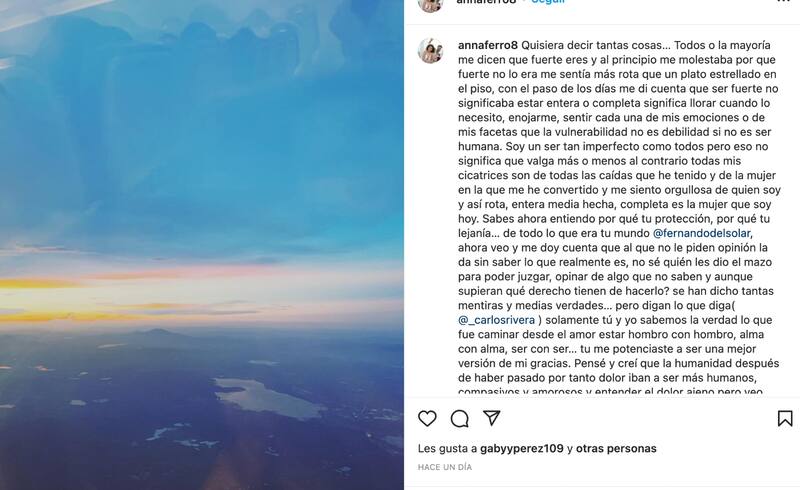 La ex esposa de Fernando del Solar rompio el silencio tras ser acusada de vaciar las cuentas de banco del fallecido conductor, además de supuestamente vaciar algunas propiedades. A través de su Instagram compartió un mensaje diciendo que las cosas no son lo que parecen.