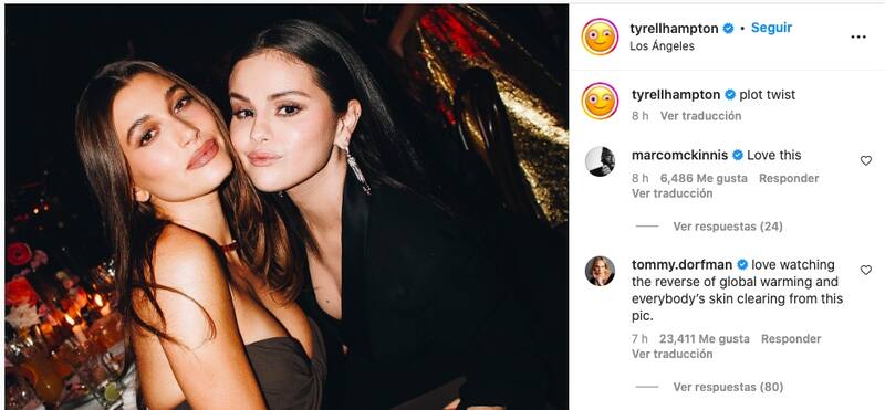 "Giro de la trama", escribió Hampton acompañando la imagen que subió a su cuenta de Instagram. Los rumores decían que Hailey y Selena estaban enemistadas por Justin Bieber, pareja actual de la modelo.