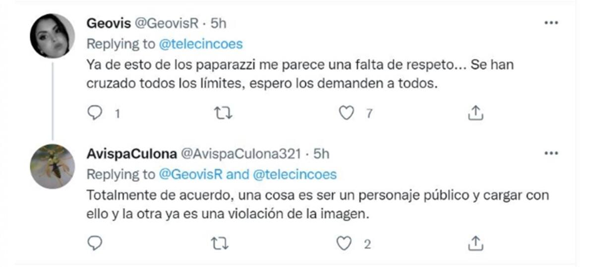 Sin embargo, la mayoría de las críticas no han sido lanzadas a la cantante, sino a los paparazzis, pues muchos han comentado que es una falta de respeto, ya que no respetan ni los ratos íntimos de los famosos, por lo que no se les hizo un acto con gracia.
