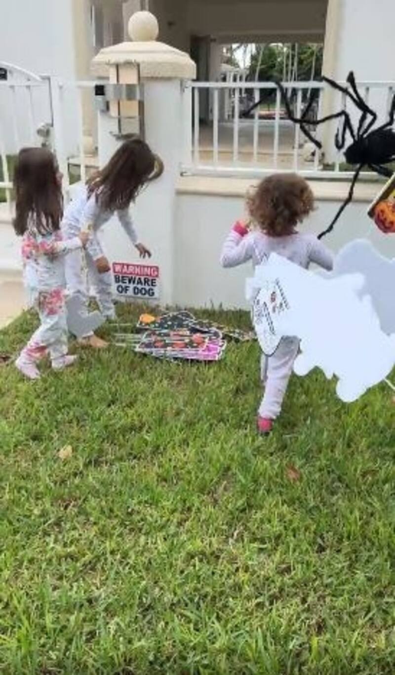 En las imágenes, las niñas se muestran felices a la cámara, mientras colocan calaveras, imágenes de fantasmas, arañas y calabazas, y disfrutan de algunas golosinas.