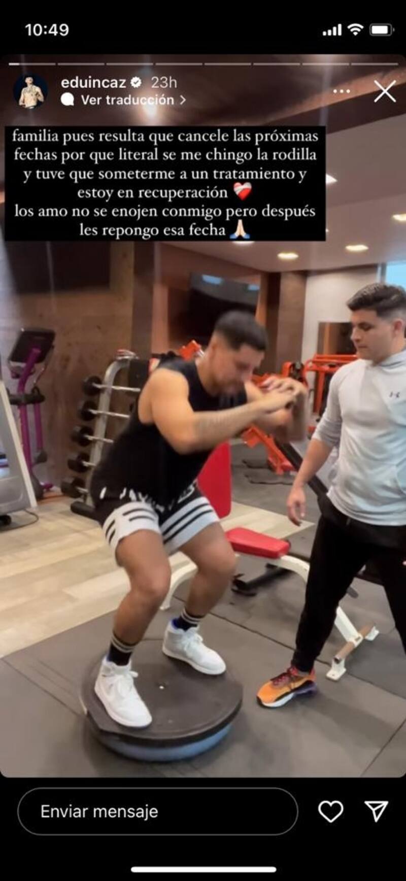 "Familia, pues resulta que cancele las próximas fechas porque literal se me chingó la rodilla y tuve que someterme a un tratamiento y estoy en recuperación. Los amo, no se enojen conmigo, pero después les repongo esa fecha", explicó.