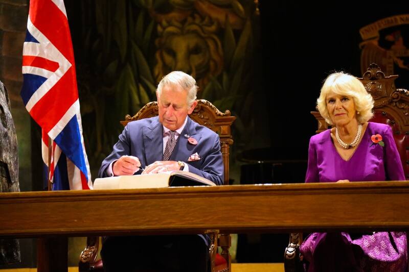 El entonces príncipe de Gales viajó en representación de su madre, la reina Isbael II, y fue acompañado por su esposa, quien en ese momento ostentaba el título de duquesa de Cornwall.
