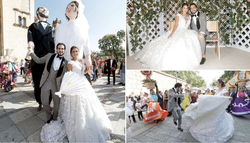 La expareja tuvo una fiesta tradicional oaxaqueña en la que mezclaron los atuendos, ceremonias, ritos y glamour en una fiesta que se prolongó por varios días; y es que el 12 de enero se casaron por el civil en Zinacantán, Chiapas, pero el 23 de noviembre tuvieron una fiesta religiosa en la que lanzaron la casa por la ventana.
