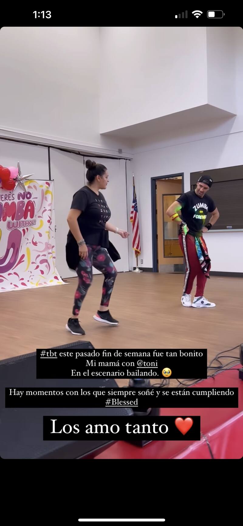 El encuentro estuvo lleno de acción y baile, pues Costa bailó al ritmo de zumba con su suegra. "Fue tan bonito. Mi mamá con Toni en el escenario bailando", comentó.