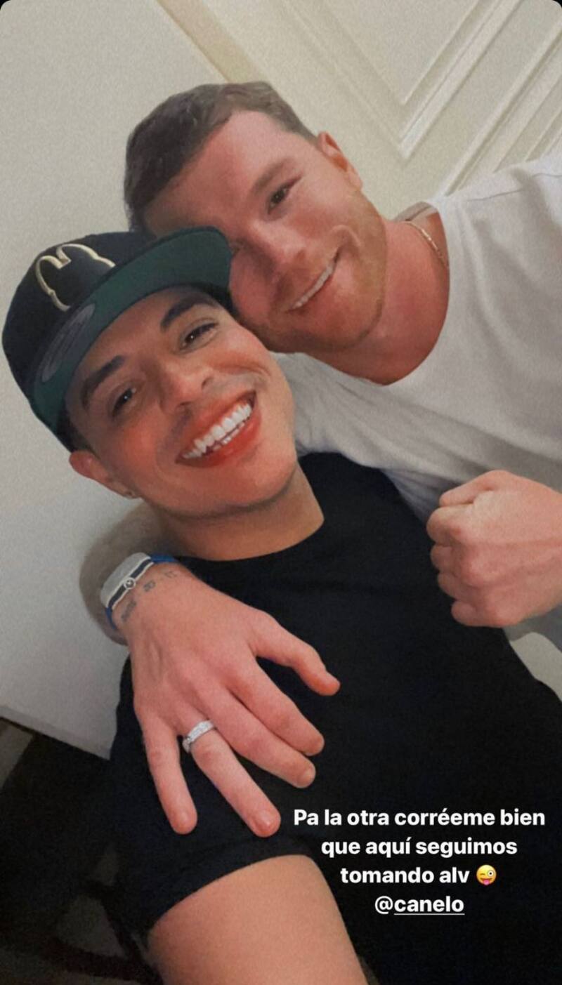 "Pa' la otra córreme bien que aquí seguimos tomando alv", fue el texto que escribió Eduin Caz en su publicación en la cual etiquetó a Saúl "Canelo" Álvarez, quien, no respondió a la historia pero sí la compartió en su perfil de Instagram.