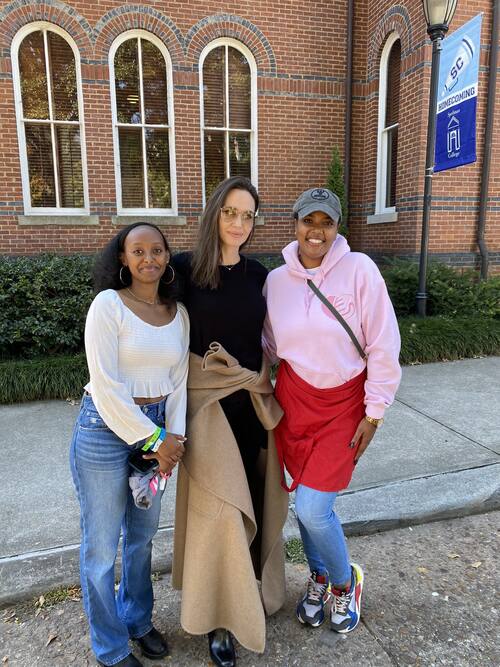 En agosto, Angelina Jolie contuvo las lágrimas mientras se unía a su hija el día de la mudanza: "¡Voy a empezar a llorar! Todavía no he empezado a llorar", dijo Jolie a la Dra. Helene Gayle, presidenta de Spelman, en un vídeo compartido por la vicepresidenta de asuntos estudiantiles de la escuela.
