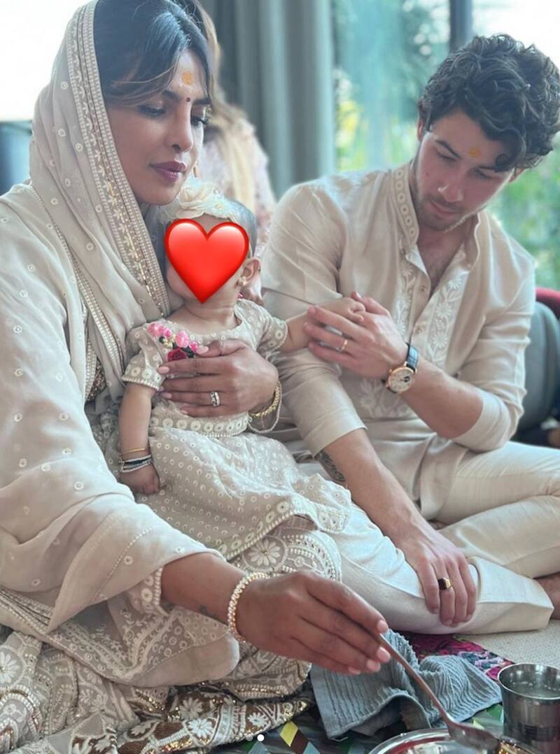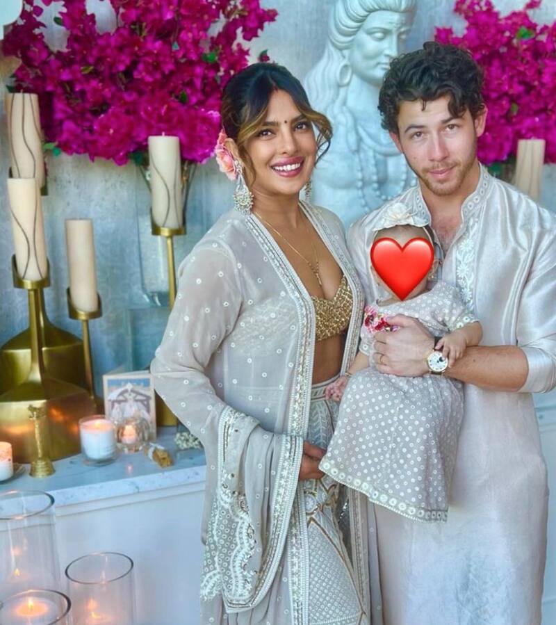 Esta es la primera vez que Nick Jonas y Priyanka Chopra celebran con su hija que nació en enero de este año vía vientre alquilado.