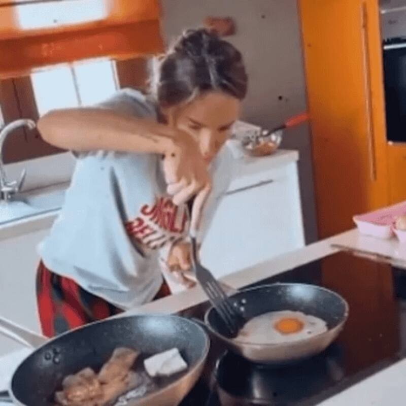 Uno de los lugares que más compartía la pareja en su momento a través de las redes sociales era cuando la cantante realizaba deliciosos platillos que se preparaban en una cocina con varias alacenas de color café, y electrónicos de acero inoxidable.