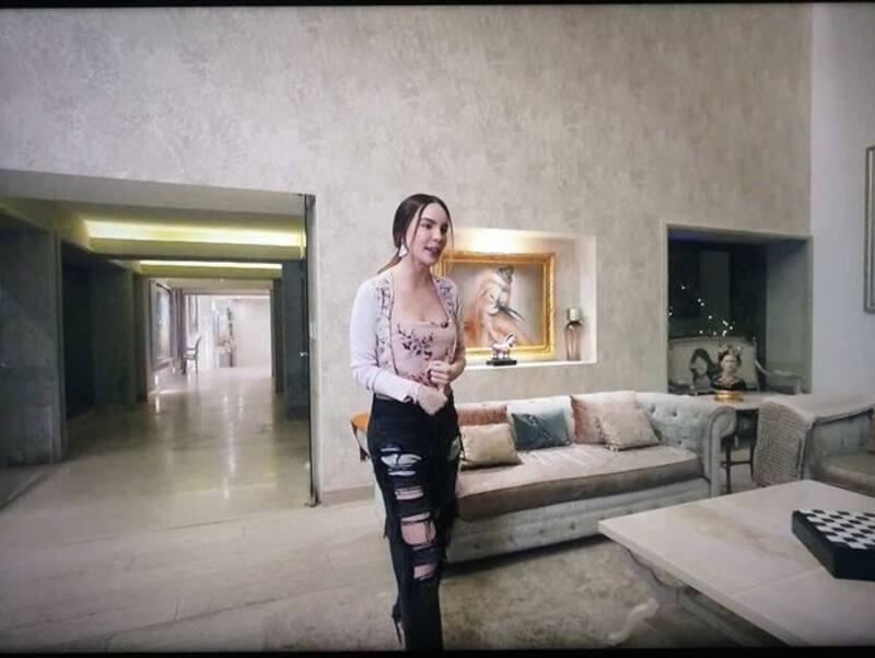 Una vez que cruzaron las puertas, la lujosa mansión "parecía una lujosa galería de arte", con fotografías en distintos formatos colocadas en casi todas las paredes; los espacios eran amplios con muebles costosos y elegantes, un jardín repleto de flores y más, Belinda es feliz en su hogar, al que calificó como "el puro reflejo de su personalidad rockera, popera, surreal, perfeccionista, detallista".