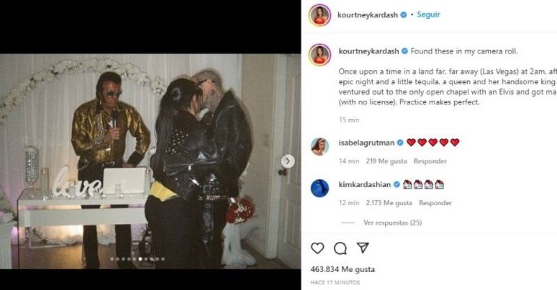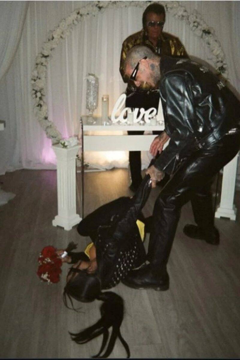 El baterista y Kourtney Kardashian se casaron después de la ceremonia de los premios Grammy 2022, donde Travis Barker participó tocando batería junto a H.E.R. y Lenny Kravitz. Luego, emprendieron a la One Love Chapel en Las Vegas, donde concretaron su matrimonio ante un imitador de Elvis Presley.