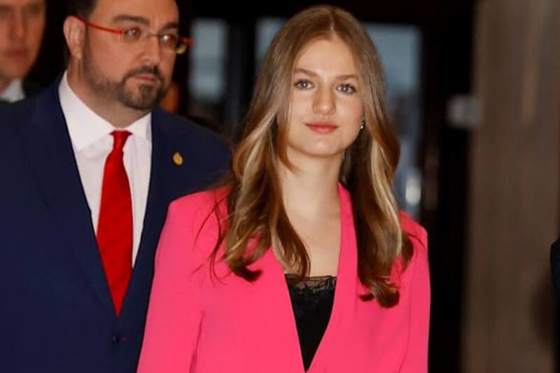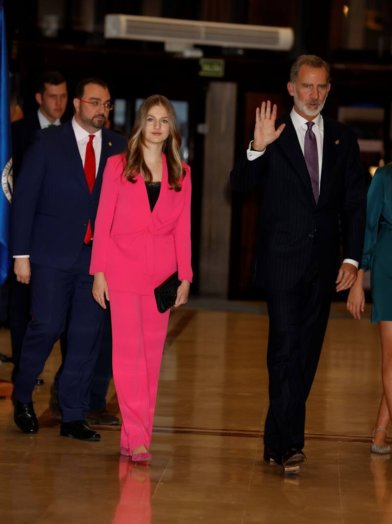 Leonor, a quien no se veía en España desde las vacaciones de la familia real en Palma de Mallorca, lució un traje de pantalón y chaqueta, de color fucsia como el vestido que llevó en el concierto del año pasado.