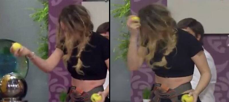 Este reto consistía en que los participantes tenían que partir una manzana con la cabeza. Inmediatamente y por su personalidad competitiva, la cantante cuya frase favorita es "ganando como siempre" tomó la manzana y golpeó en reiteradas ocasiones su frente contra la fruta sin lograr su cometido, dejando en la memoria de las personas uno de los momentos más vergonzosos e icónicos en la carrera de la ex prometida de Christian Nodal.