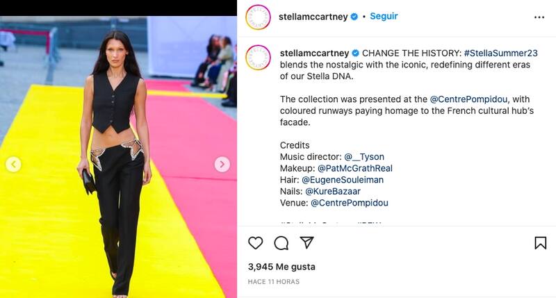 Bella Hadid ha estado muy ocupada durante la Paris Fashion Week. Y en el desfile de Stella McCartney simplemente acaparó los reflectores con un look deslumbrante,