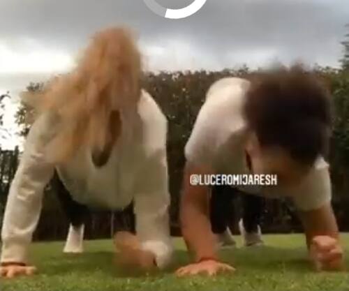 En las imágenes se puede ver a Lucerito Mijares realizando trabajo de brazos y abdomen mientras se mantiene en una posición de plancha, pero segundos después se pone de pie y comienza a realizar algunos brincos, presumiendo su buen estado de salud y la habilidad que tienen para hacer esos difíciles movimientos.