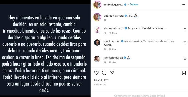 "Sé también de su arrepentimiento y lo que ha trabajado en su persona espiritualmente en amor y crecimiento… Ha hecho un gran trabajo interior, mental, de aceptación, perdón y de amor… Dios arrope a las dos familias… Es el caso de personas buenas con decisiones equivocadas", agregó.