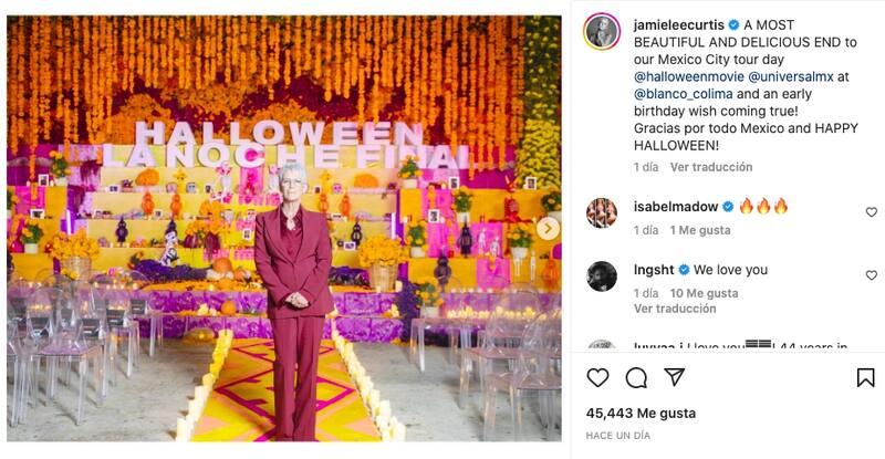 Añadió: "¡Gracias por todo México y FELIZ HALLOWEEN!". La actriz fue la invitada de honor a una ofrenda inspirada en la franquicia de terror Halloween, que concluirá el 13 de octubre con el estreno de la nueva película.