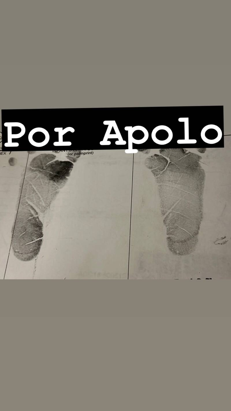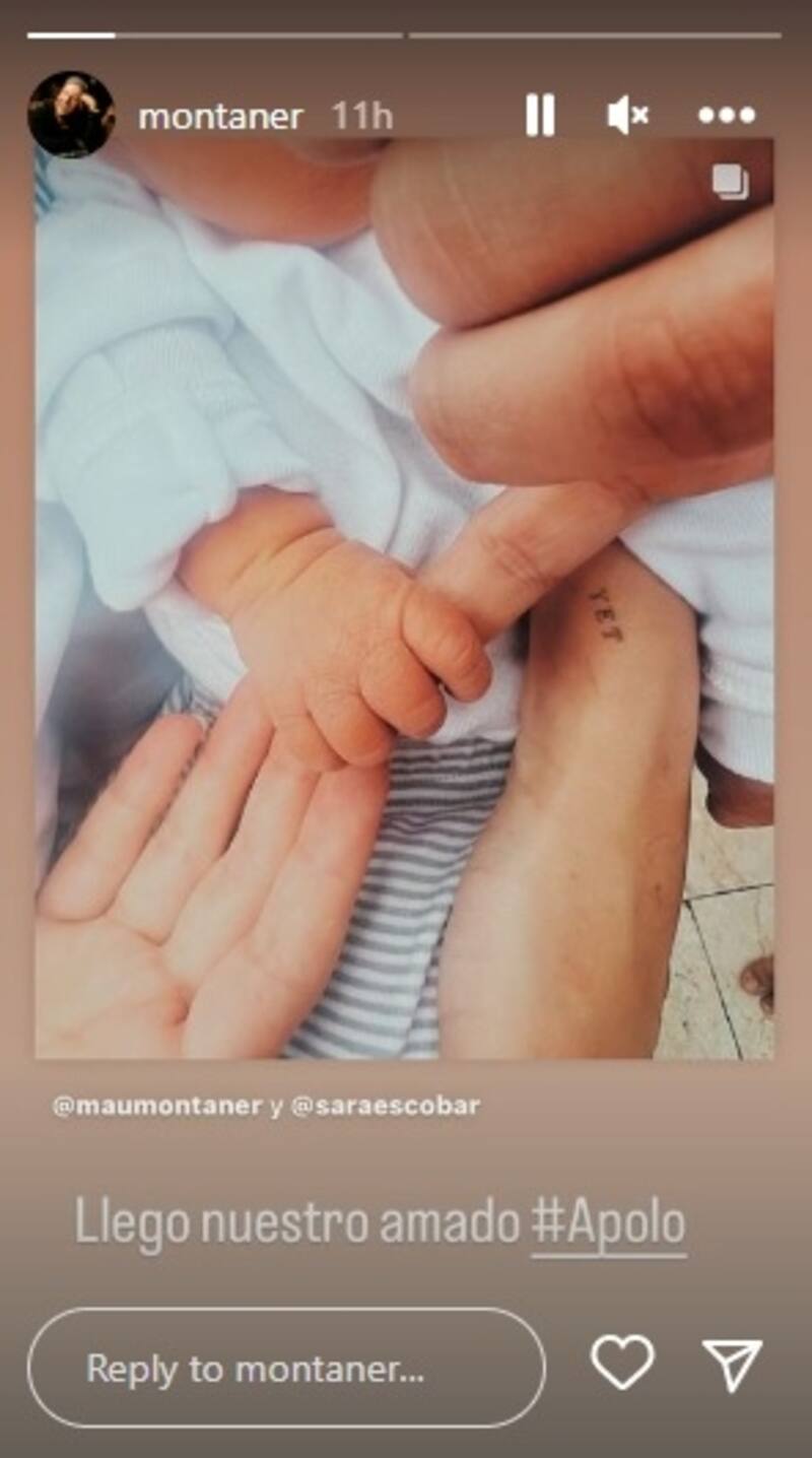 La madre de Mau Montaner subió una foto del primer registro médico de Apolo, en particular, sus patitas inmortalizadas en una hoja para la biométrica del bebé. Mientras que Ricardo Montaner compartió la publicación de su hijo con el siguiente mensaje: "Llegó nuestro amado Apolo".
