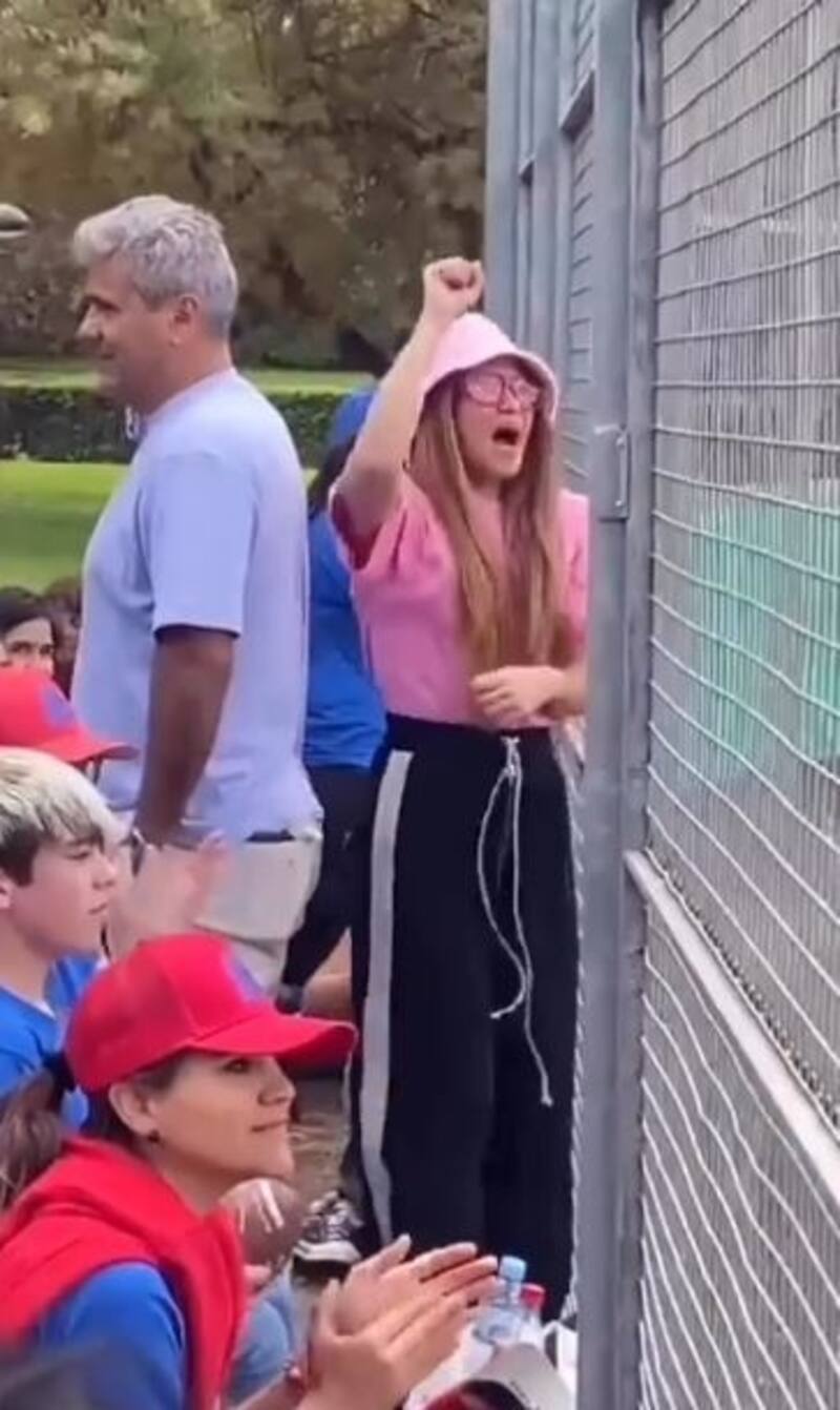En redes sociales se viralizó el video que muestra a Shakira vestida con un look casual compuesto por pants, playera, gorro y lentes de sol en color rosa, mirando desde la reja de la cancha el desempeño de su hijo. "¡Bravo, mi amor!" dice mientras aplaude y brinca con cada jugada sin importar que la gente la mirara.