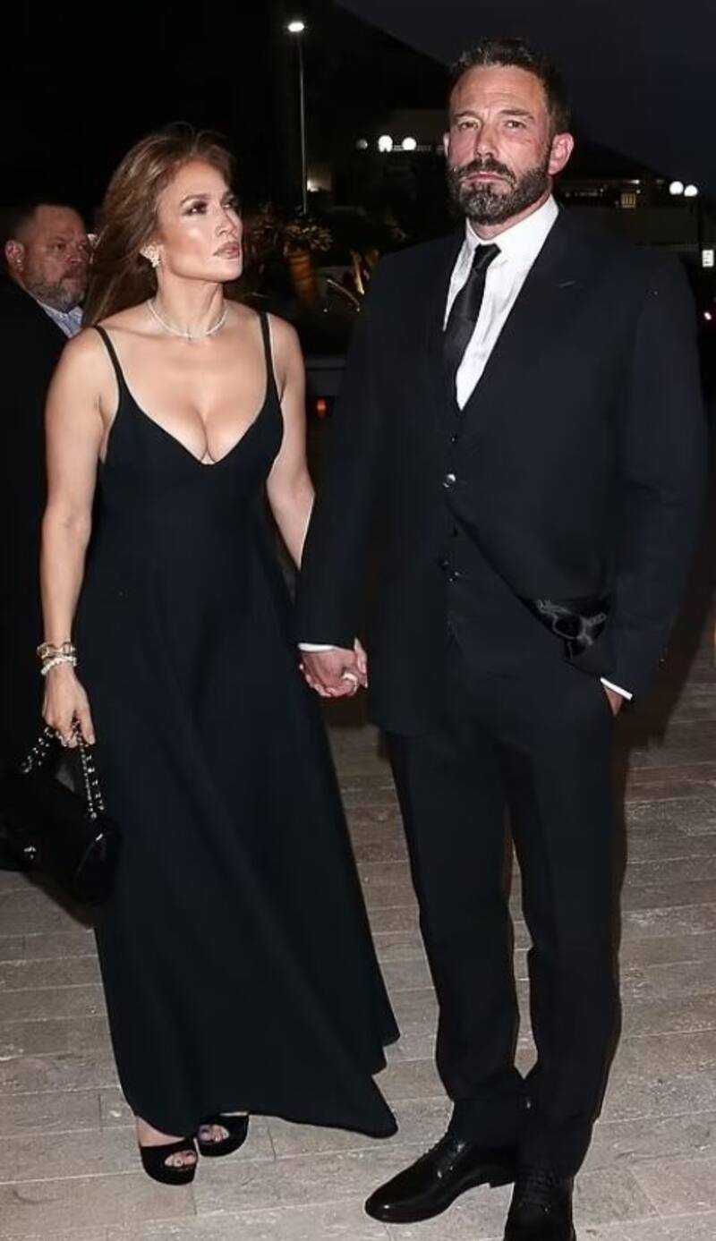 Los Bennifer lucieron atuendos muy elegantes. Ella optó por un vestido color negro con un pronunciado escote, zapatillas altas negras. Usó su cabellera suelta, pocas joyas y una pequeña bolsa.