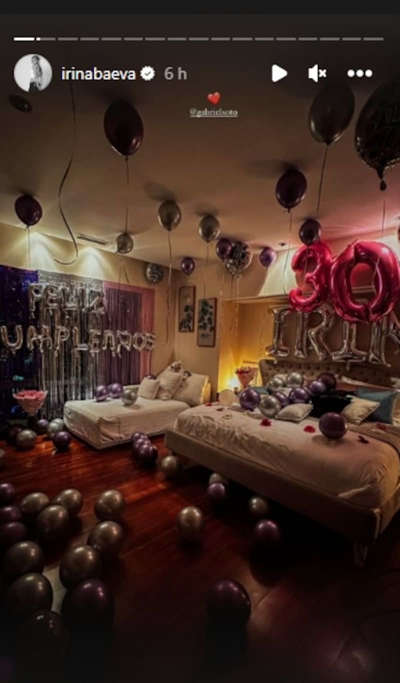 Es muy activa en sus redes sociales y a través de ellas compartió todo lo que el actor le preparó. Primero mostró que le decoró su recámara con globos que decían "¡Feliz cumpleaños Irina!" acompañado de un enorme ramo de flores que la también actriz recibió con mucha emoción pero confiesa no haberlo publicado por el jetlag después de tantos viajes.