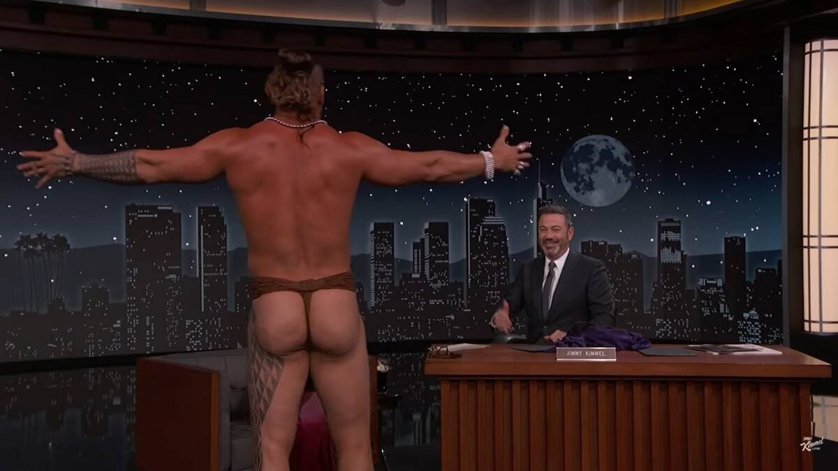 "¿Lo estás usando debajo de tu ropa en este momento?", consultó el animador. "Claro", dijo su invitado en el estudio. "¿Está hecho de cuero?", seguía con su cuestionario el presentador, cuando el actor se puso de píe, se desvistió y se dio una vuelta mostrando su trasero al descubierto.