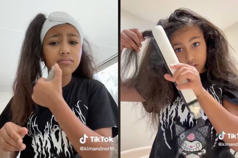 Luego de su rutina de belleza, North West planchó su cabello y se dirigió a su amplio armario, donde escogió entre una impresionante variedad de ropa negra y camisetas antes de optar por un look totalmente negro, muy parecido a los que su padre Kanye West utiliza.