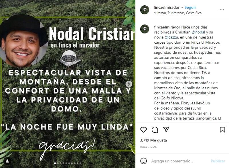 Christian Nodal y Cazzu están viviendo su amor al máximo y disfrutaron completamente sus días en Costa Rica descansando en este original y único hotel.