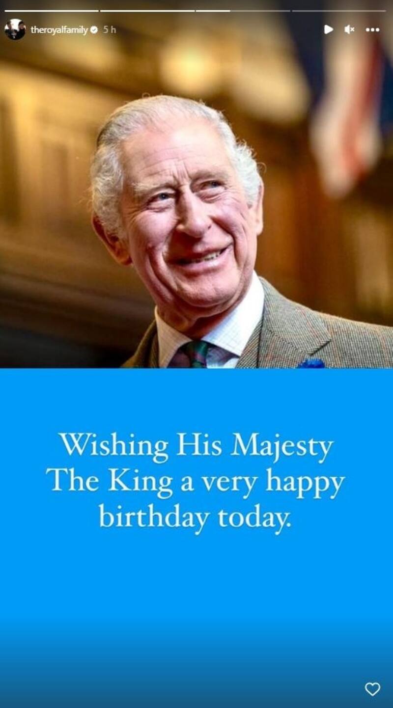 A través de la cuenta oficial de Instagram de la familia real se le ha rendido un sincero homenaje a Su Majestad con motivo de esta importante celebración. "Deseando a Su Majestad el rey un muy feliz cumpleaños", escribieron al pie de una foto en la que se mira Carlos III muy sonriente".