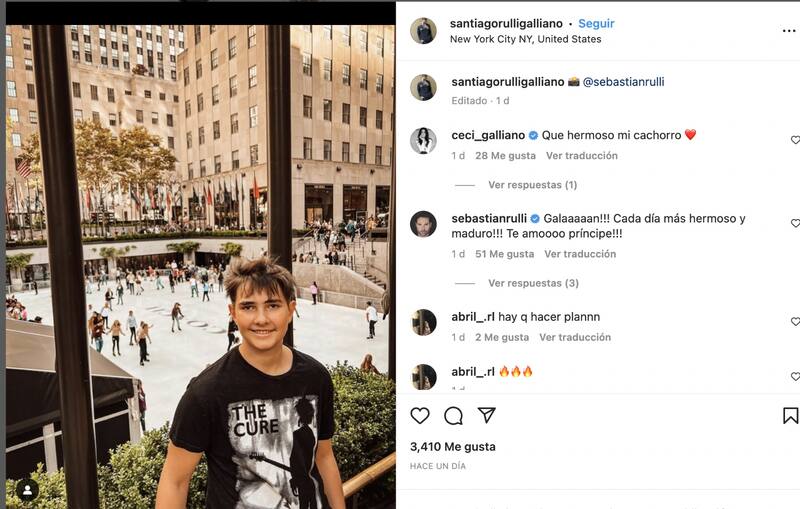 Además de estás fotografías, Santiago Rulli Galliano también decidió compartir con sus seguidores en Instagram, una foto que su papá le tomó en el viaje que tuvieron por la ciudad de Nueva York. Dicha foto además de sorprender a sus fans que comentaron que heredó la belleza de su padres también lo hizo con sus progenitores.