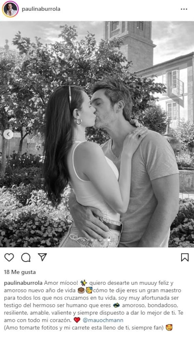 En contraste con la breve felicitación de Aislinn Derbez, la modelo Paulina Burrola, actual pareja de Mauricio Ochmann, expresó en una extensa publicación de Instagram toda la admiración y cariño que siente por él, a quien describe como un gran hombre amoroso, inteligente, bondadoso y valiente.