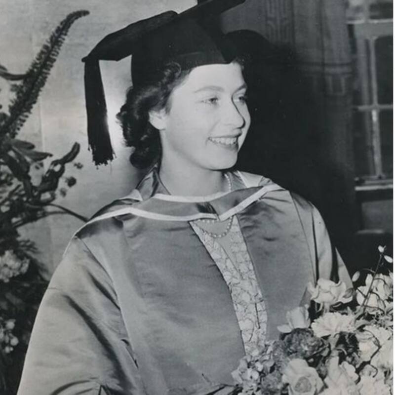 En 1946, la princesa Isabel recibió una licenciatura honoraria por la Universidad de Londres. La ceremonia se llevó a cabo en la casa del Senado y la futura soberana fue captada por la cámara vestida con una toga y un birrete en la cabeza, como toda una graduada.