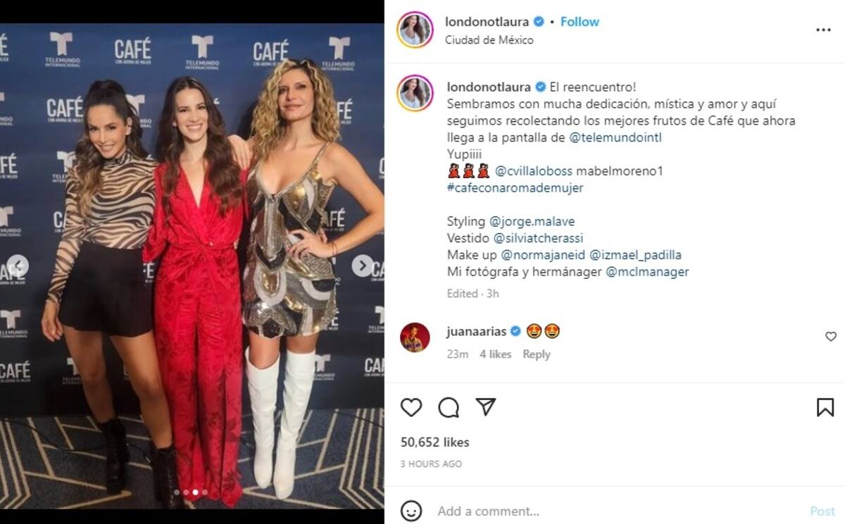 Mientras que Carmen Villalobos compartió un reel en el que junto a Laura Londoño y Mabel Moreno desfilando haciendo gala de todos sus encantos. "¡Qué gran reencuentro! ¡Un hermoso día de promoción con estas bellezas! ¡Qué felicidad saber que #cafeconaromademujer nos sigue regalando cosas maravillosas!", comentó.
