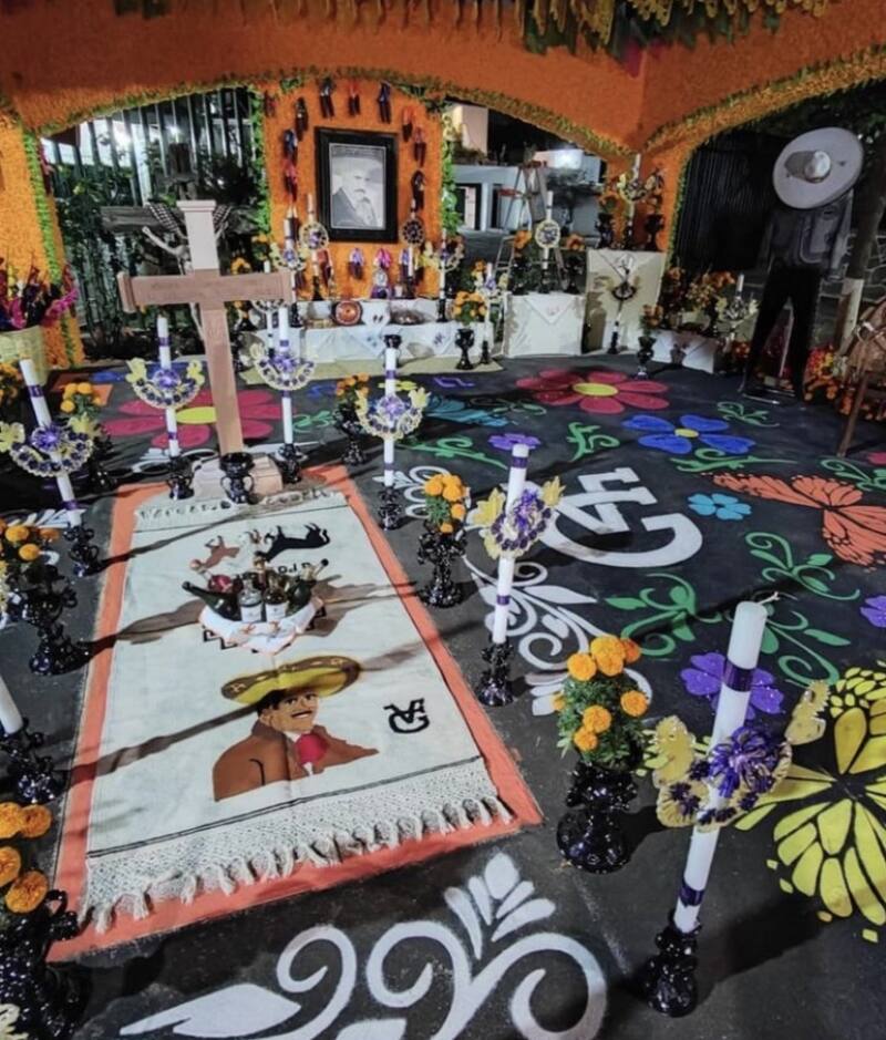 Los detalles de esta gran ofrenda estuvieron a cargo de experimentados y hábiles artesanos y fue montada frente a la tumba del Charro de Huentitán, quien siempre disfrutó de honrar no solo la música mexicana sino también las tradiciones de su natal México.