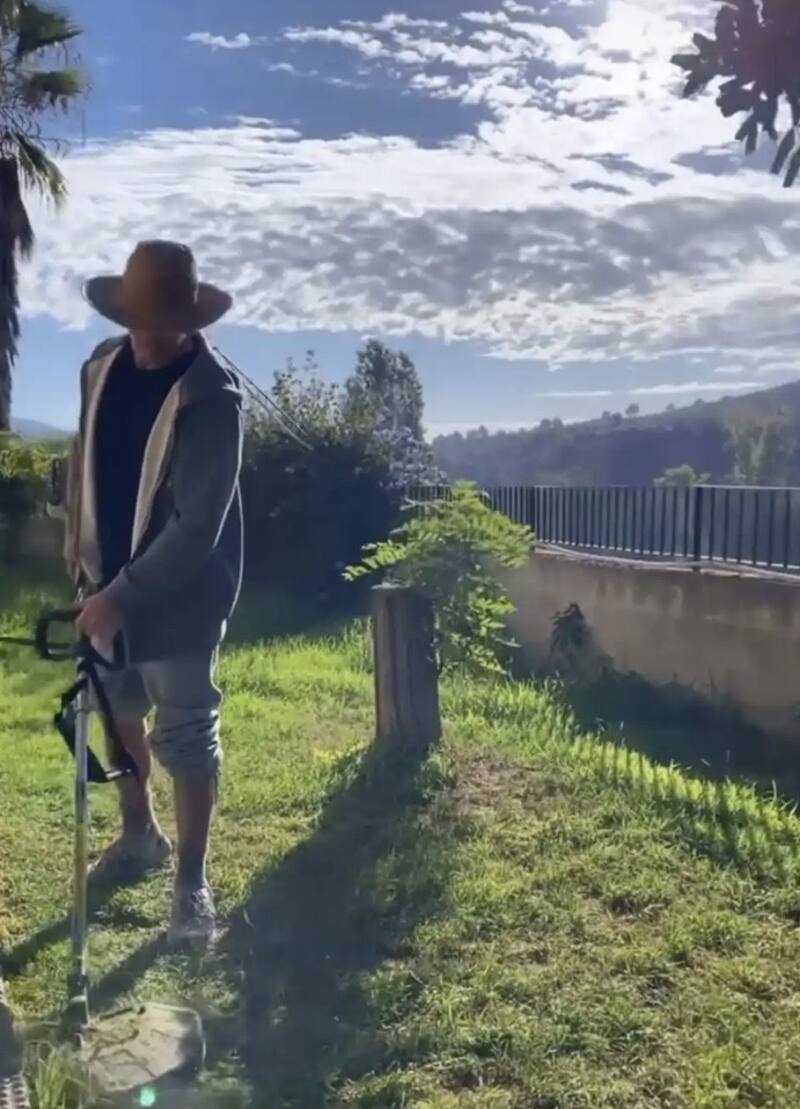 En la imagen posteada se puede ver al exconcursante de “Supervivientes” con una cortadora de césped y posando con un gorro para evitar los rayos del sol, mientras pone en orden el jardín, lo que ha evidenciado que su estado de salud está mejorando.