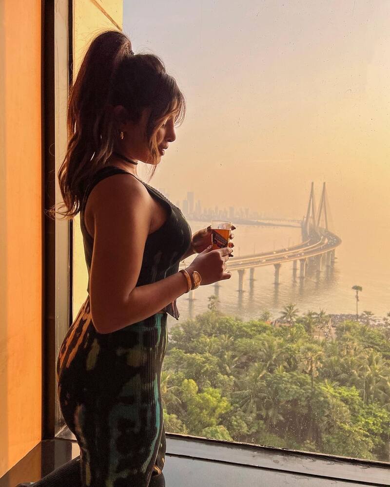 Antes, Priyanka Chopra subió dos fotos en las que sale en una venta con el impresionante Bandra-Worli Sea Link de fondo. "Hogar. Esperando los próximos días…", escribió.