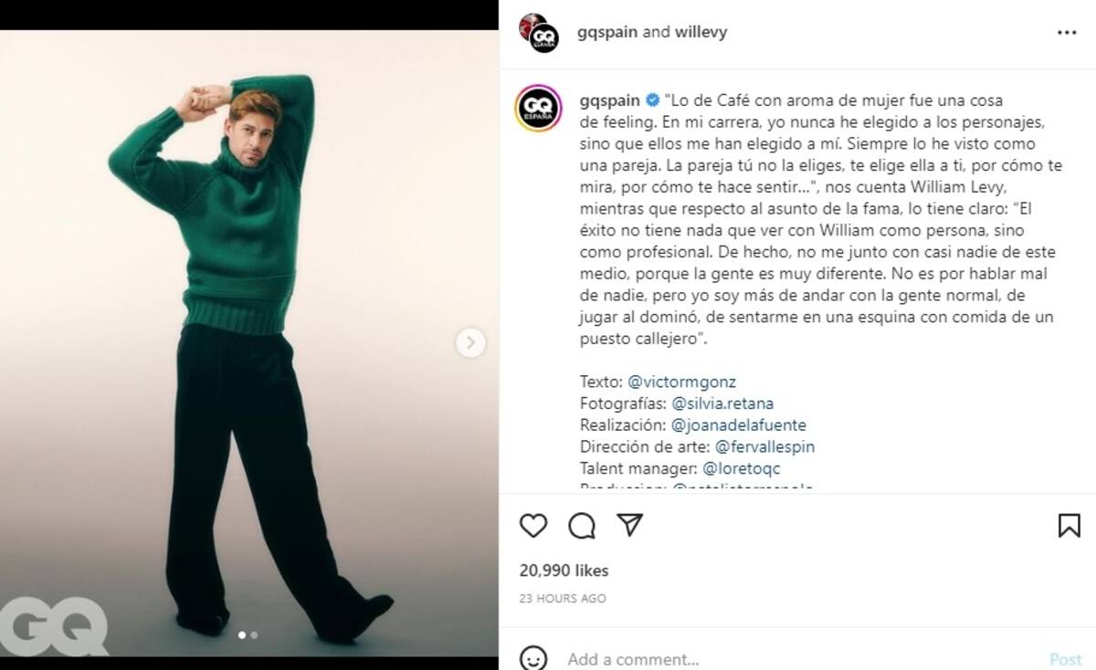 William Levy conversó versión española de GQ, donde habló de su infancia en Cuba, sus proyectos actuales y el éxito de "Café con aroma de mujer".