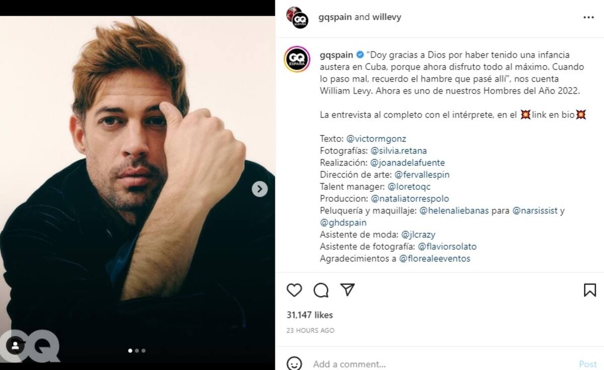 William Levy fue elegido por la versión española de GQ como uno de los Hombres del Año 2022, compartiendo este honor con Héctor Bellerín y Diego Luna.