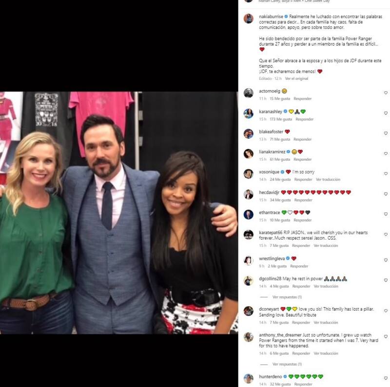 "Realmente he luchado con encontrar las palabras correctas para decir... En cada familia hay caos, falta de comunicación, apoyo, pero sobre todo amor. He sido bendecido por ser parte de la familia Power Ranger durante 27 años y perder a un miembro de la familia es difícil... Que el Señor abrace a la esposa y a los hijos de JDF durante este tiempo. ¡JDF, te echaremos de menos!", escribió.