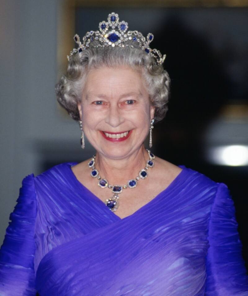 Para celebrar la tan especial ocasión la reina consorte Camilla usó una de las tiaras favoritas de la reina Isabel II, a quien ha rendido tributo cada que tiene la oportunidad. Se trata de su tiara de zafiros belgas, la cual la fallecida monarca usó en Singapur en 1989 y para la visita de estado de China al Reino Unido en 2015.