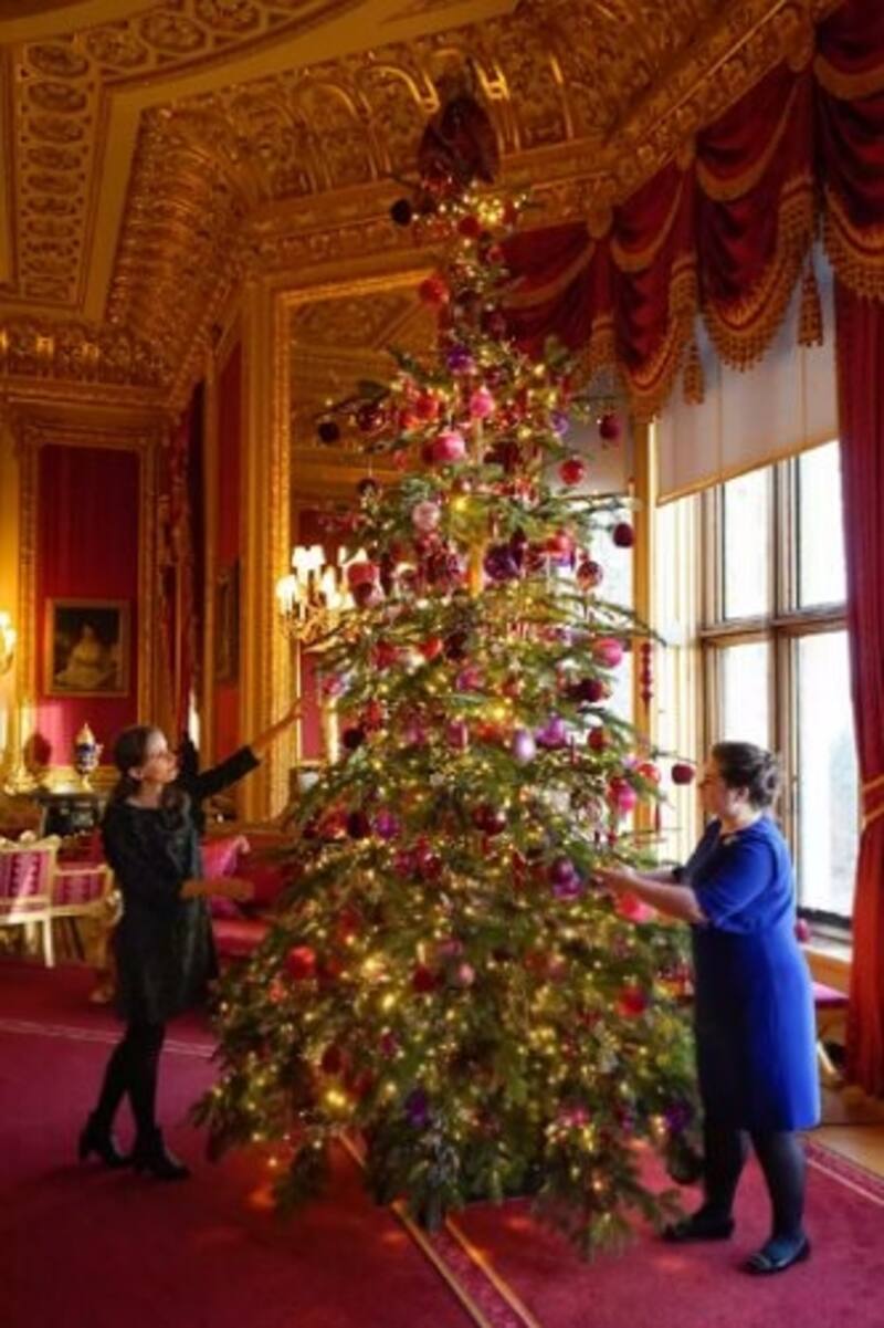 Miembros del Royal Collection Trust dedicaron horas a decorar las estancias del castillo, y como pieza central es el imponente árbol de abeto de más de seis metros de altura, cultivado de manera sostenible en las cercanías de Windsor Great Park y resplandeciente con cientos de adornos, así como miles de luces, cientos de adornos joya y cintas de satén y terciopelo en color morado. Una decoración que podrá verse desde el 24 de noviembre hasta el 2 de enero de 2023.