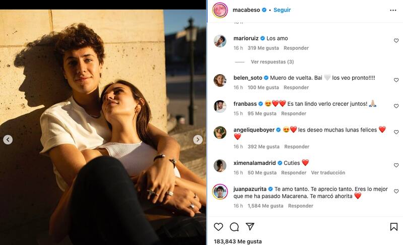 El youtuber de 26 años respondió casi de inmediato: "Te amo tanto. Te aprecio tanto. Eres lo mejor que me ha pasado Macarena. Te marcó ahorita".