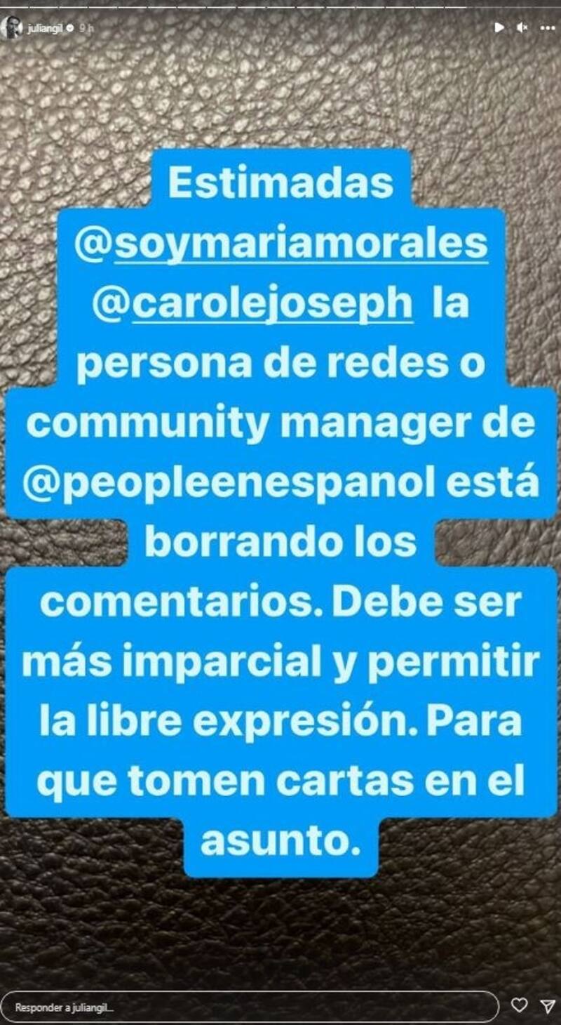 Los reclamos de Julián Gil no pararon ahí y aprovechó el espacio para arremeter contra los administradores de redes sociales de People en Español por borrar sus comentarios a la publicación sobre la portada de Marjorie.