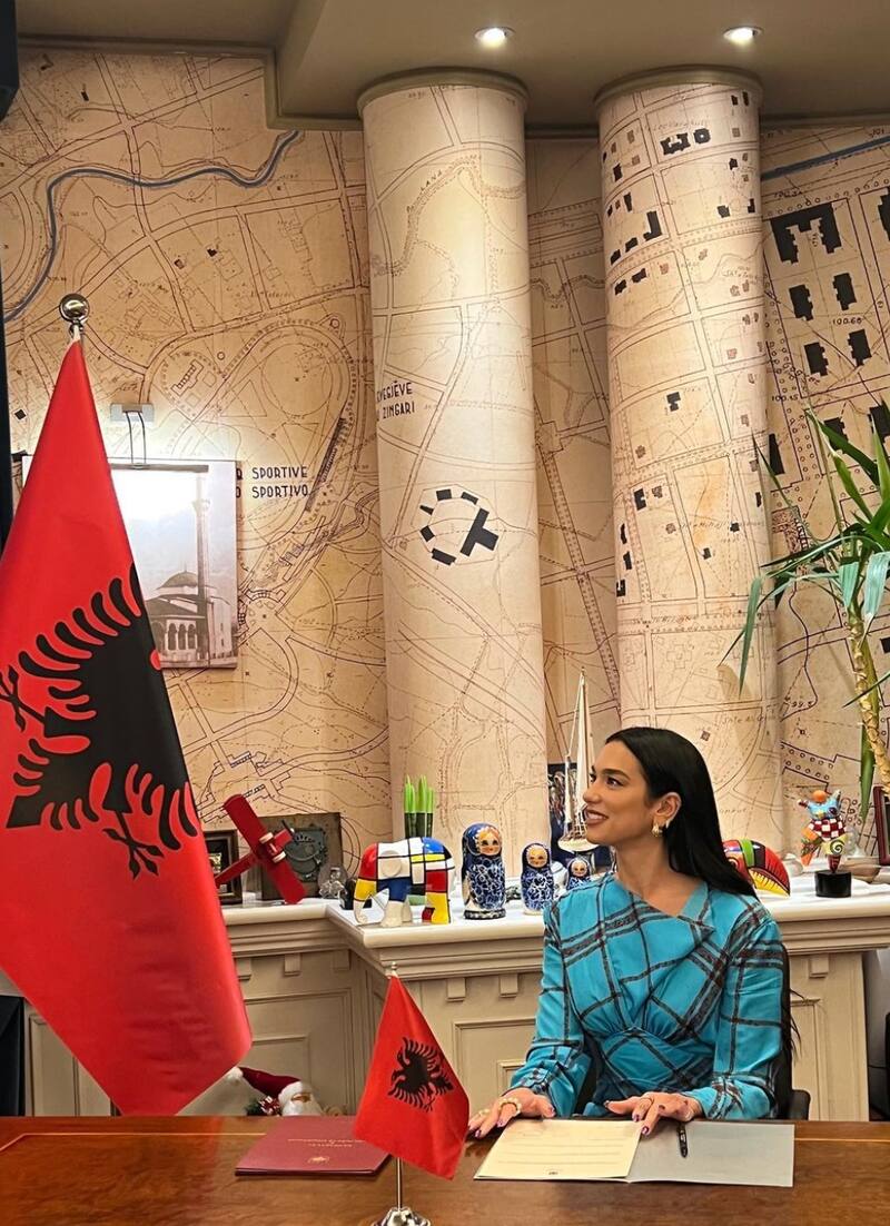 “Feliz de darle a la única e inigualable Dua Lipa el decreto de ciudadanía albanesa”, escribió en su Twitter. “Nos ha enorgullecido con su carrera global y su compromiso con importantes causas sociales”.