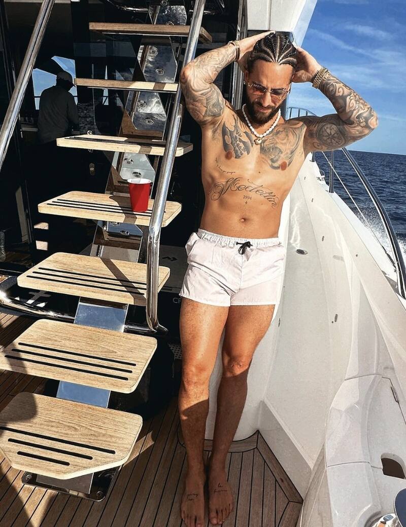 El artista estrenó look con trenzas en su cabello. De paseo y tomando el sol, Maluma luce un perfecto bronceado de paseo en un barco.