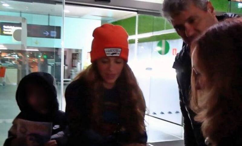 En redes sociales circularon fotografías del momento en el que la intérprete de "Te felicito" y "Monotonía" arribó al aeropuerto de El Prat, en Barcelona, con un look casual a su regreso del viaje. Seguidores de la estrella que tuvieron la oportunidad de encontrarla se acercaron a ella, quien amablemente accedió a tomarse fotos y firmar autógrafos. Minutos después salió del inmueble con sus hijos, su hermano Tonino y su mánager.