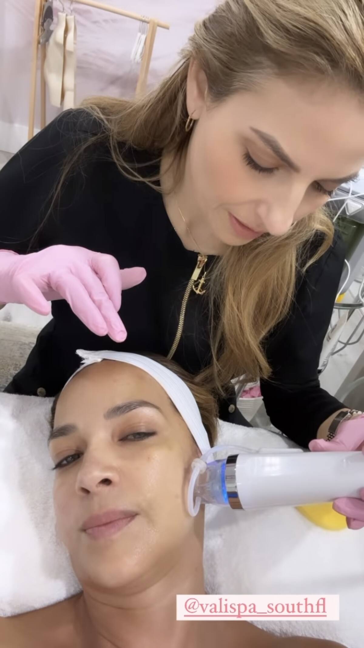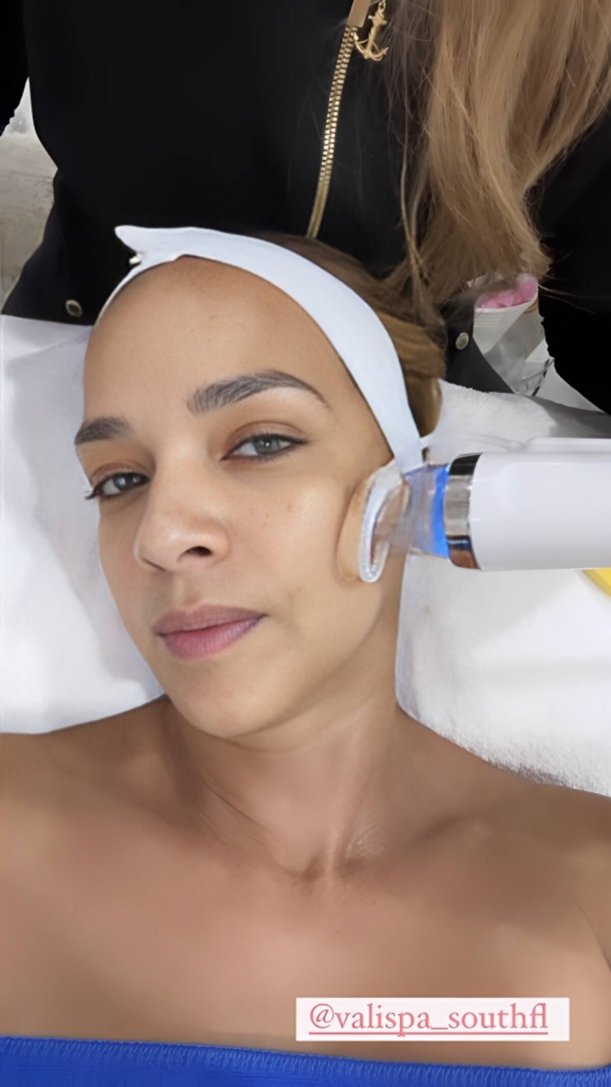 Al terminar, la también actriz disfrutó de un masaje en la cara, mientras le aplican un suero reparador después de una mascarilla, y al final se pudo apreciar su rostro con un cutis suave y sin arrugas.