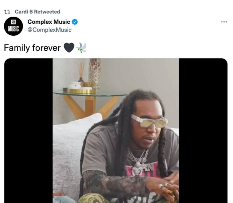 Cardi B hizo un homenaje a Takeoff al retuitear un mensaje compartido por Complex en el que el grupo de rap, específicamente Takeoff, discute sobre la importancia de la familia.